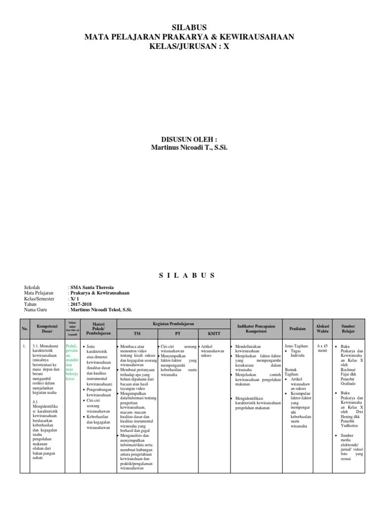 Silabus Kewirausahaan Kelas Xii - Moqgr0ekvalhom / Silabus mata pelajaran nama sekolah :